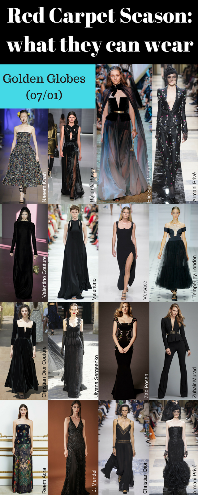 Every beginning of year Hollywood celebrates the best productions of the year. While people and lovers of the industry gets excited about who will be nominated and, eventually, win, what makes me excited for Red Carpet Season is the fashion. This year the dress code for the Golden Globes is All Black, which is a movement, made to show their disapproval with the abuses made in the industry. The choice is interesting and, hopefully, will lead the actresses to make different (but still nice) outfit choices. I don’t know if the other award shows will also go for such a color strict dress code, but there will probably be at least one person wearing black as a form of protest.