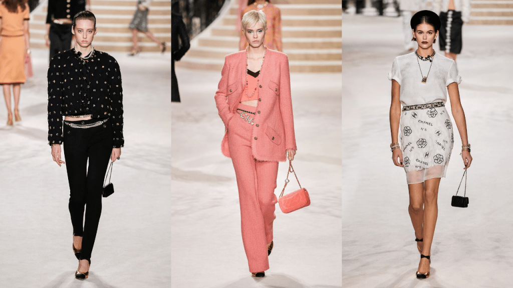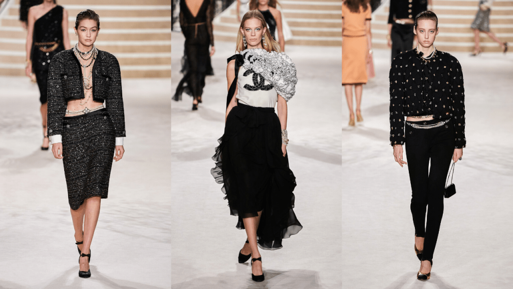 Black was a major feature in this collection, and there is no surprise in that, since it also is one of Coco Chanel’s symbols. Just as the monochrome, this outfits could be boring if it wasn’t for the maisons d’art they work with. Feathered blazers and ruffled skirts helped make it interesting and young.