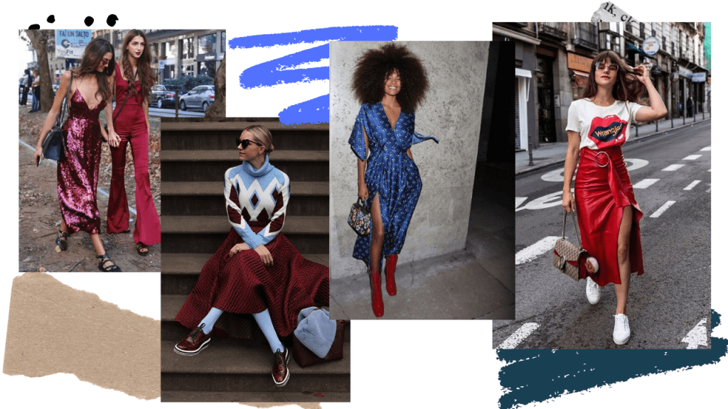 Christmas is also the perfect time to embrace red. It can be through a beautiful skirt, dress or even your boots. If you’re going to a more casual party, t-shirt and sneakers can be a good fit, while a silk or sequined dress are nice options for more fancy and formal ones.