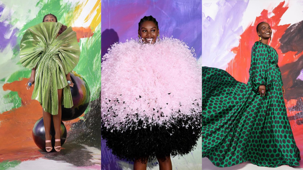 The Halpern Spring 2021 collection was a celebration. Founder Michael Halpern invited a group of frontline workers to model the clothes, and participate in a video where they also share a bit of their story. There was a nurse, a gynecologist, hospital cleaner, train operator… all in beautiful, glamourous outfits.