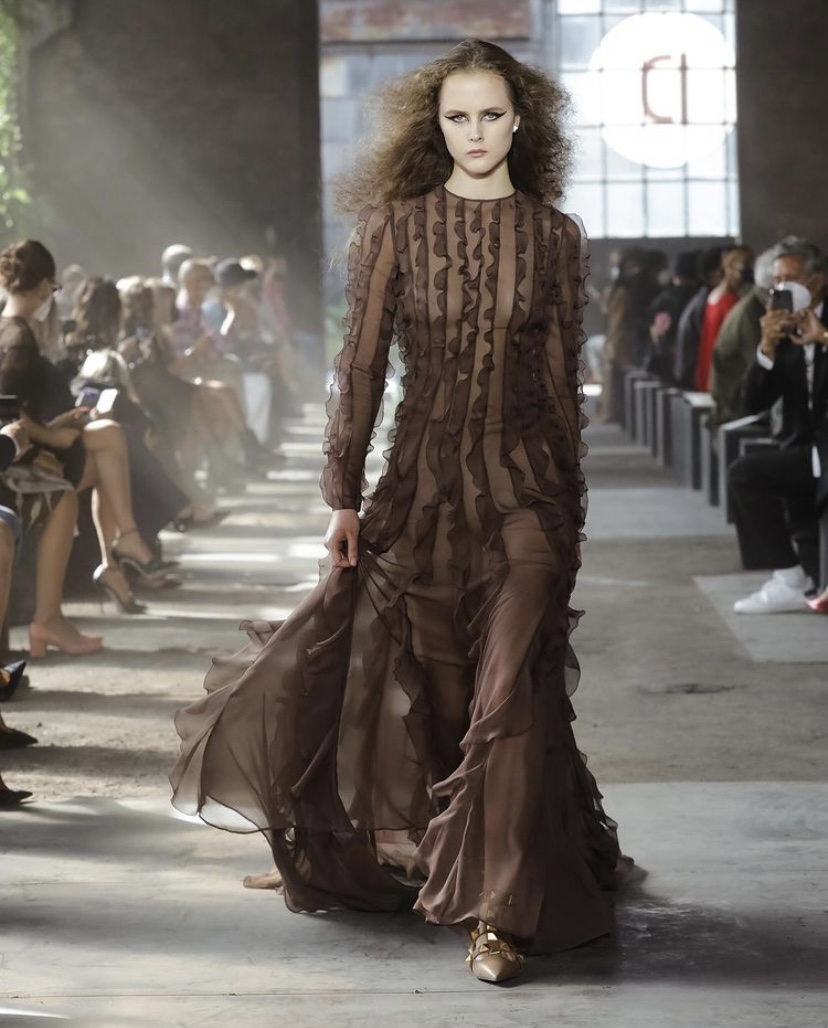 Even though aesthetics wasn’t the main focus, this is one of his strongest prêt-a-porter collections to date. The clothes had visually simple and minimalist cuts, and played with couture elements such as texture, which was created through embroideries, macrame and crochet. Piccioli also played with other classics of the brand. Here, the famous rockstuds appeared in an enlarged scale.