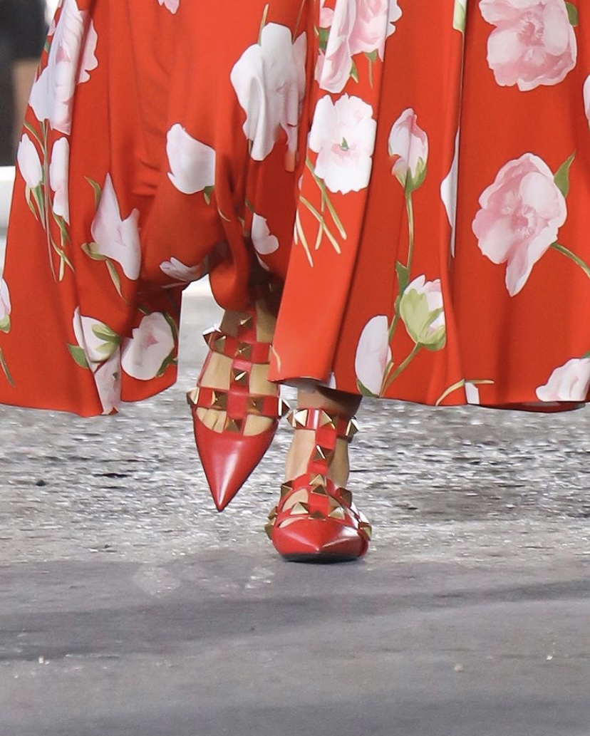 If you pay attention, you’ll notice that only one print appears throughout this whole collection. It is a vibrant floral that was made famous by Anjelica Huston in 1972, after she was photographed by Giampaolo Barbieri wearing it.