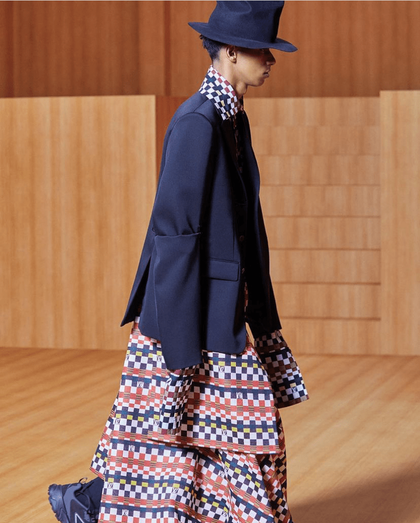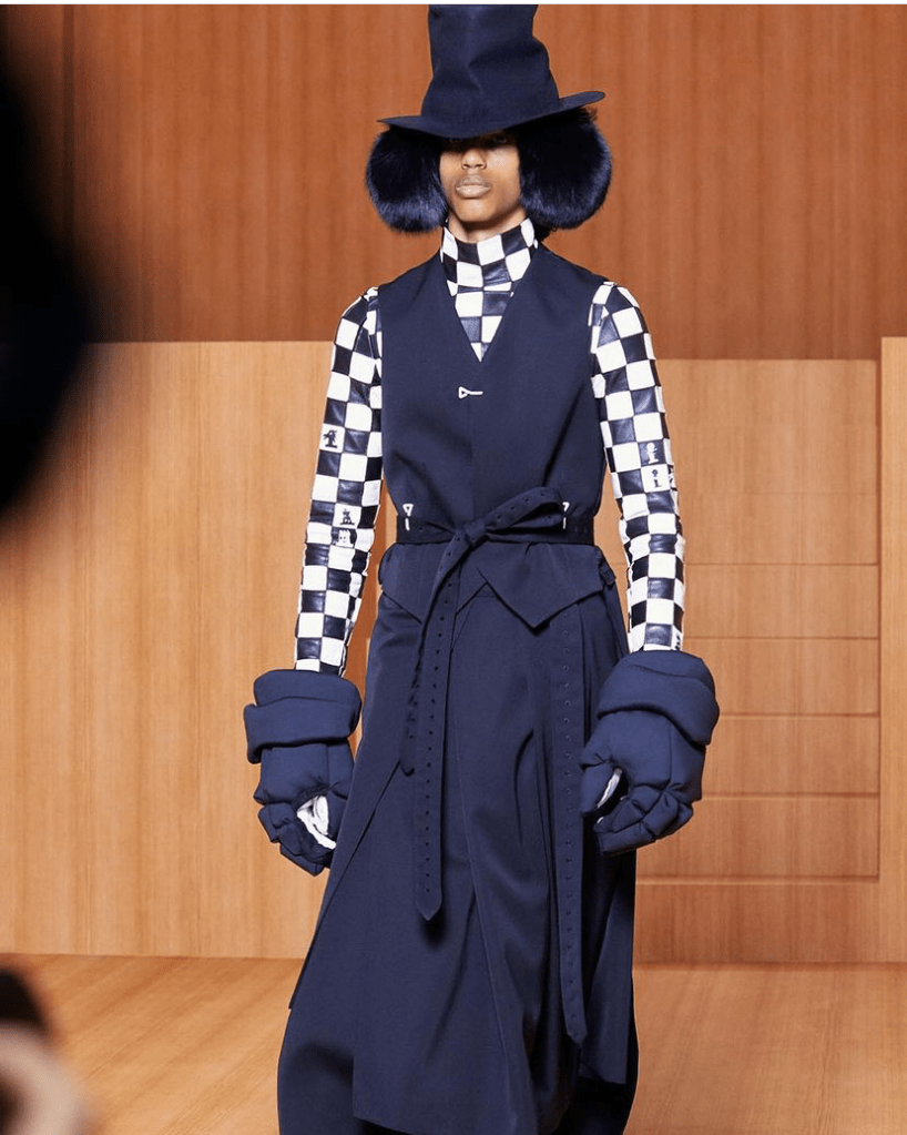 Another main theme was chess, the concept of two entities that are always battling, and how details like a color can divide us. It is a parallel to the general situation of culture in 2020, but also a link to Vuitton’s trademarked Damier print.