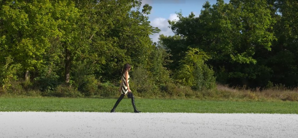 The Courrèges Spring 2022 collection captured the zeitgeist of the moment. For his second collection as creative director, Nicolas di Felice’s gathered inspiration from archival pieces of the 1960s and 1970s. The idea of a space-age outdoor music festival was also a factor in the design.